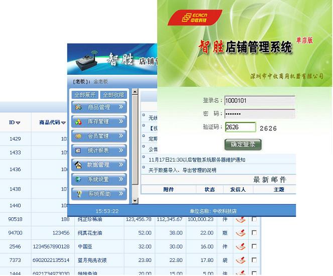 无线收款机是具有GPRS无线通讯功能的电子收款机,无线收款机跟中收智胜单店版后台通过GPRS进行双向通讯,从而构成一套完整的收银管理系统。本系统具有商品管理,销售管理,库存管理,报表管理等最常用功能,此外还可以购买具有会员功能的版本。