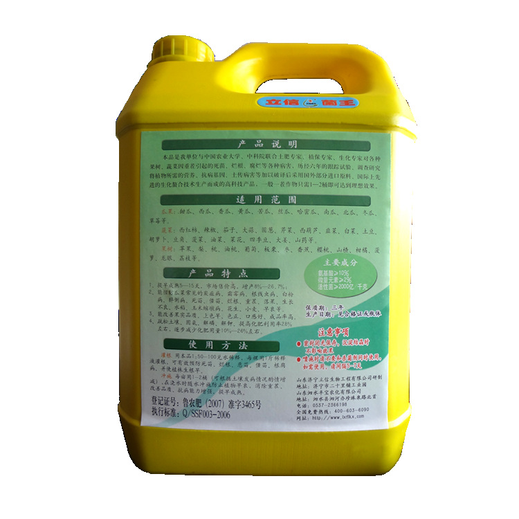 死苗烂根一灌灵:复合微生物菌剂,是国际上领先的复合微生物菌剂,该产品内含80多种有益复合微生物菌,其产品的每一菌株菌都经过严格的训化和筛选,并采用合理的配比,独特的生产工艺又配加了植物所需的各种抗重茬因子和营养成分生产而成。我公司又联合国内十几位著名土肥专家、植保专家对全国十几个省市的各种蔬菜、果树、花卉、瓜类植物以及小麦、玉米、棉花、水稻和花生等农作物,因重茬引起的烂根死苗、早衰腐烂、树体流胶,历经八年的跟踪试验、调查研究根据植物所需营养、抗病基因、土传病害加以破译后,找到一个满意答案。如严格按照说明书使用,在治愈蔬菜烂根死苗,果树树体衰弱烂枝流胶等方面成功率达90%以上,产量增加20%以上。总之该产品施用原则:早期用比晚期用,治病效果好,多用比少用效果明显,灌施比喷施效果更好。