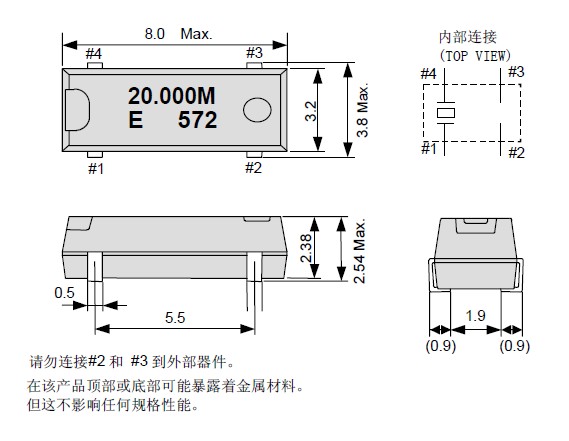 • 晶体产品可能会在某些条件下受到损坏。例如从桌上跌落或在贴装过程中受到冲击。如果产品已受过冲击请勿使用。