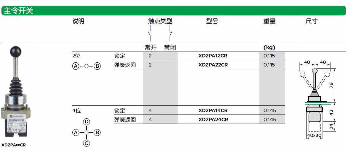 施耐德主令控制器 XD2-PA22CR