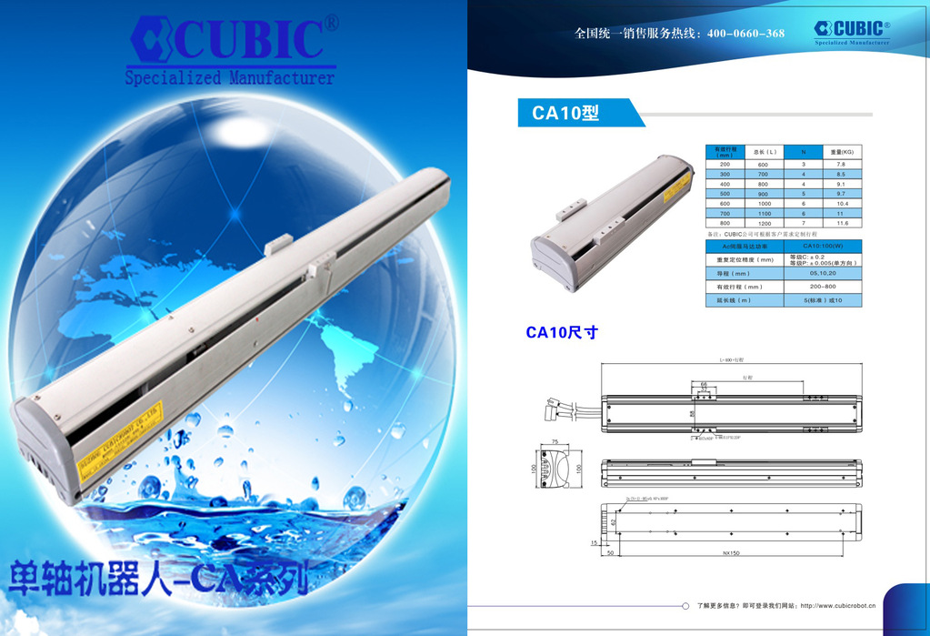CA系列单轴机器人结构设计精确合理并有防尘设计,使用寿命长。是特别为多轴线性机械手臂的设计制造者所提供的组合。CA系列单轴机器人是为固定各种行程、传动及动力需求而设计的模组化单轴机械手臂。