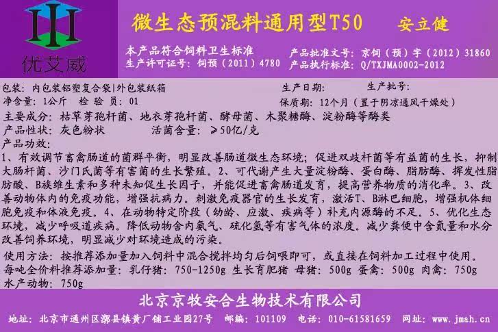 通用名:通用型安立健T50微生态预混料