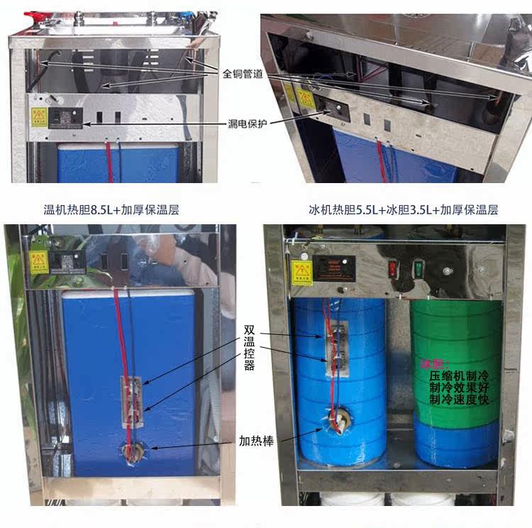 出水参数:冰水:12L/H 热水:25L/H 热水桶8.5L