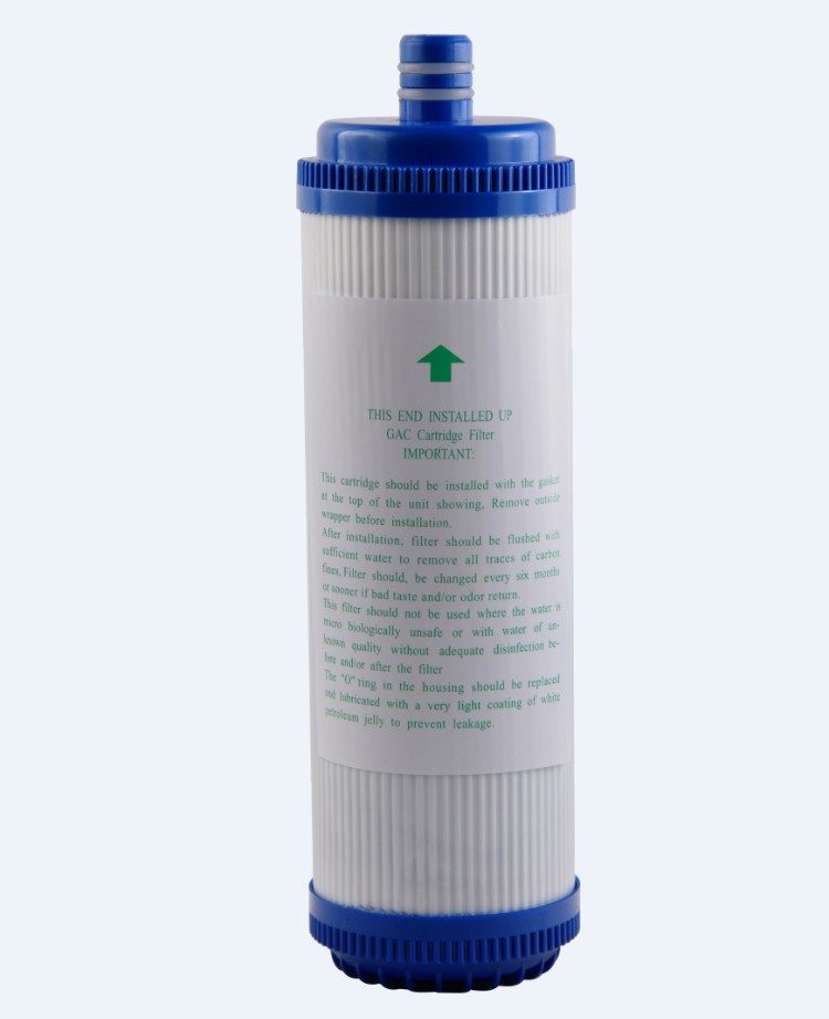2、UDF颗粒活性碳滤芯的制作:外壳采用食品级PP为材料,里面填装优质椰壳活性炭颗粒,接头处采用白色垫片(食品级PVC材质),使碳芯装入滤筒具有良好的密封性。