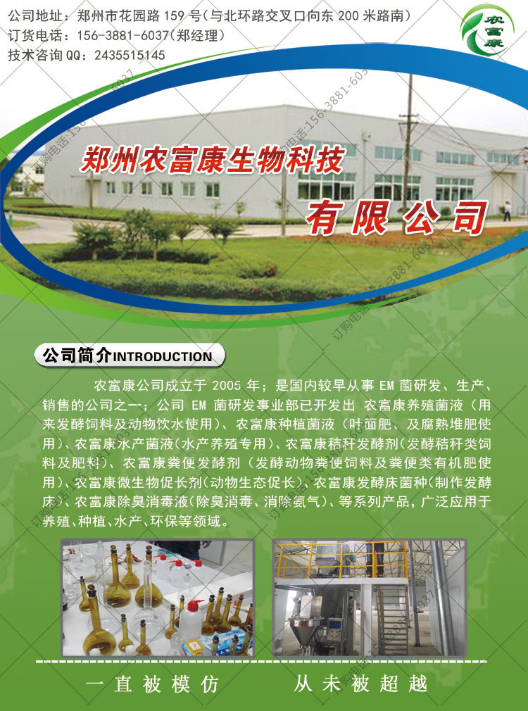 推荐使用农富康牛粪有机肥腐熟剂,农富康牛粪有机肥腐熟剂35元/袋,1瓶100克,首次扩繁一瓶可培育15公斤发酵液;农富康公司成立于2005年,近11年来,积累了大量的客户群,是业内生物菌种的领航企业。订购电-话:156-3881-6037(微信同号)