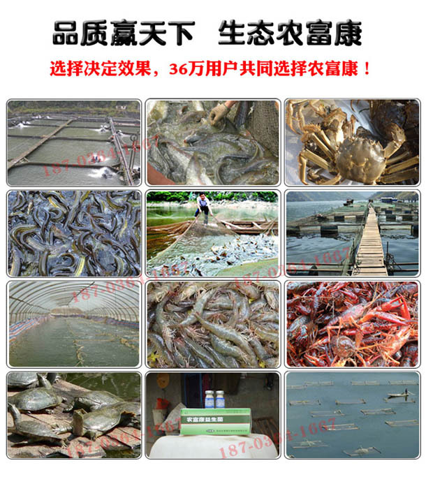 五、促进生长,增重率明显提高。实践证明,在同等环境下,用农富康水产菌液后,可提前10~15天上市,平均亩产提高20%~35%,产卵量增加25%,产