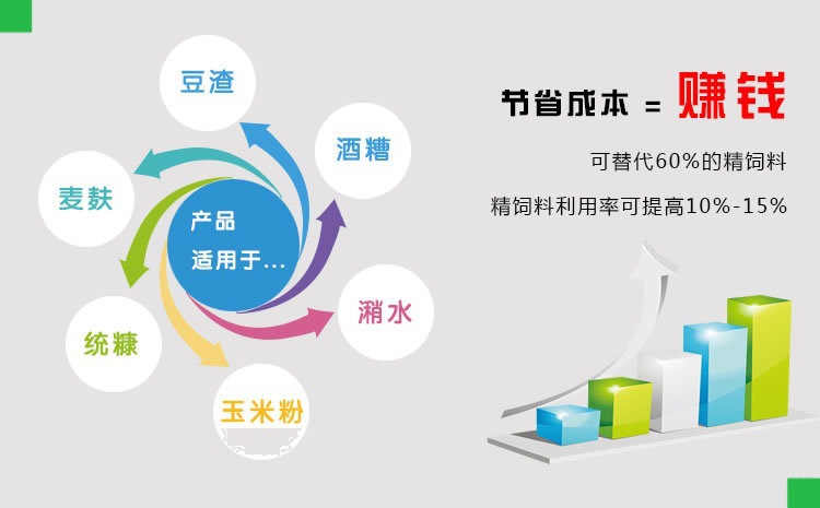 农富康饲料发酵剂(粗饲料降解剂)的好处: