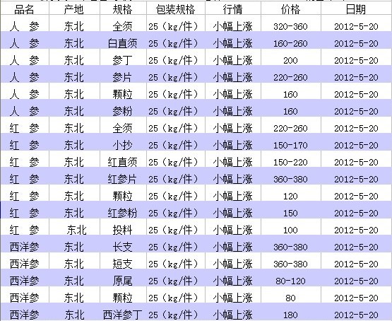 白直须、人参全须、人参丁、人参片、人参颗粒、人参粉、红参全须、红参小抄、红直须、红参片、红参颗粒、红参粉、红参投料、西洋参长支、西洋参短支、西洋参原尾、西洋参颗粒、西洋参丁。
