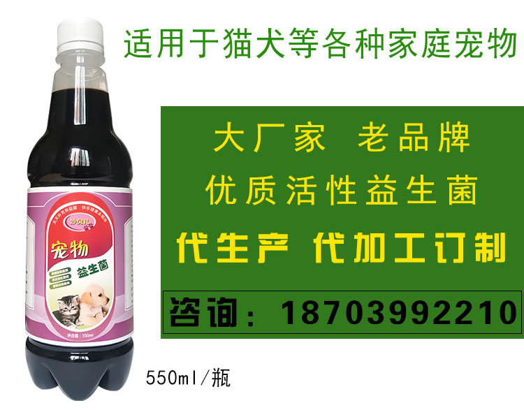 宠物专用益生菌一瓶550ml 全国零售价格28.8元/瓶 量大从优,欢迎有需要加工订制的朋友来电洽谈:18703992210