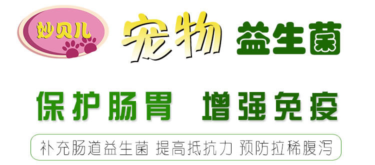 妙贝儿宠物益生菌,是由河南农富康厂家生产的宠物专用产品,针对猫狗等各种宠物肠胃发育不全、消化不良、食欲不振、拉稀腹泻、便秘口臭、体弱多病、免疫力低下等情况效果显著。