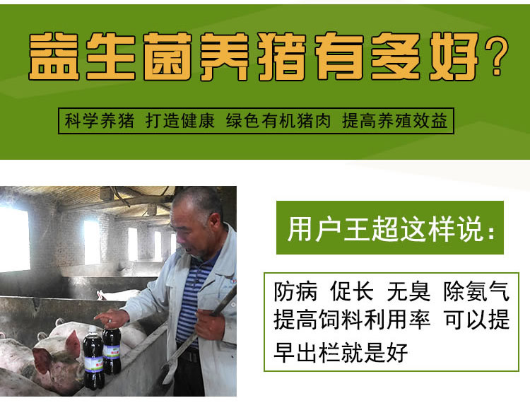 5.提高仔猪成活率:刚出生的没多久的仔猪就开始使用这个益生菌,发现成活率高了,以前每窝猪仔总会死亡2-3头,现在基本都成活了。
