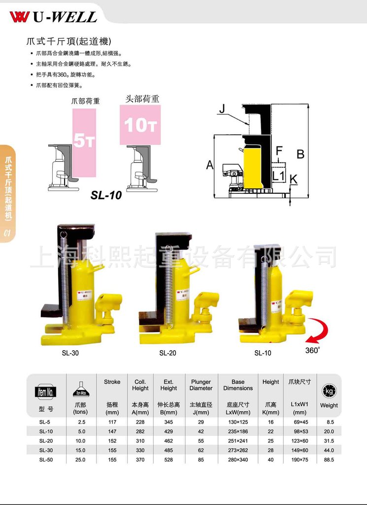 上海科熙起重设备有限公司发布的台湾优伟爪式千斤顶 铝合金爪式千斤顶 SL爪式千斤顶图集库