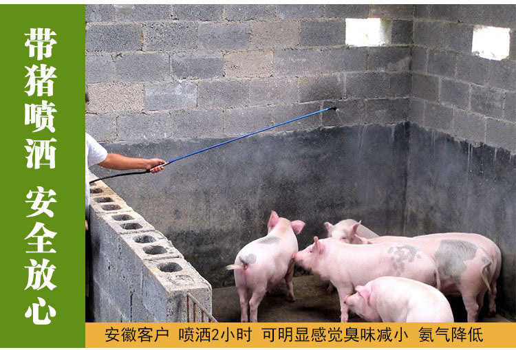 增加粪便的清理,控制养猪密度,适当通风,化学除臭等等一系列的方法,广大养殖户都在用,但是,何必这么麻烦,一种生物除臭方法,简单又好用,对猪没有危害,大猪,小猪,健康生长,带猪除臭,不用赶出圈舍。