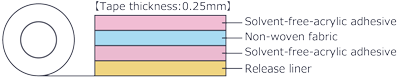 - 该胶带采用无纺布基材制成,因此可牢固粘贴在被粘合体表面上,而且还可依被粘合体的轮廓进行粘贴。