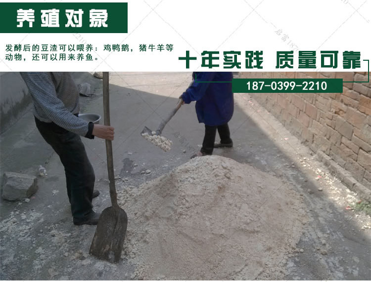 使用对象:发酵后的豆渣可以用来饲喂猪、牛、羊、鸡、鸭、鹅等禽畜,还可以用来养鱼、虾等。