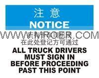 OHSA安全标识-注意--所有卡车司机须在此处登记方可通过 250MM*315MM ABS板 (售价:22元)