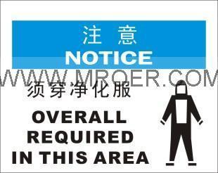 OHSA安全标识-注意-须穿净化服 250MM*315MM ABS板 (售价:22元)