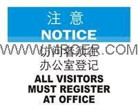 OHSA安全标识-注意-访问者须在办公室登记 250MM*315MM PP板 (售价:28元)