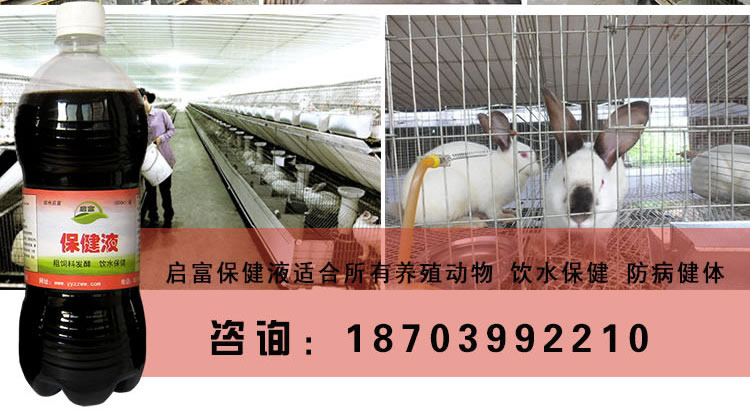 1.饮水:启富em菌保健液兑水按1:200倍稀释后,给兔子自由饮用,可以改善兔子肠道菌群平衡,提高抵抗力,预防疾病。有益菌可促使饲料的消化吸收,排出的粪便里氨氮含量少,从根本上解决了兔舍臭的问题。 病弱的兔子可按每公斤体重1ml-2ml灌服原液,每天三次视情况而定。