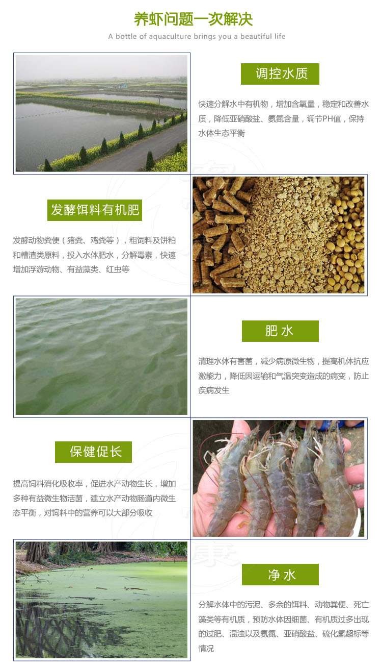 随着气温升高,虾类活动能力增强,新陈代谢加快,池塘各项水质指标也随着天气和水温的变化而变化,池塘水体氮磷负荷增大,各项水质指标不稳定,水质恶化、虾类病害的隐患加大,这里推荐你使用农富康水产EM菌种来进行调水、稳水、防病。农富康水产EM菌种是畅销全国十三年的老品牌,效果好、成本低,是你养虾的一款常备产品。