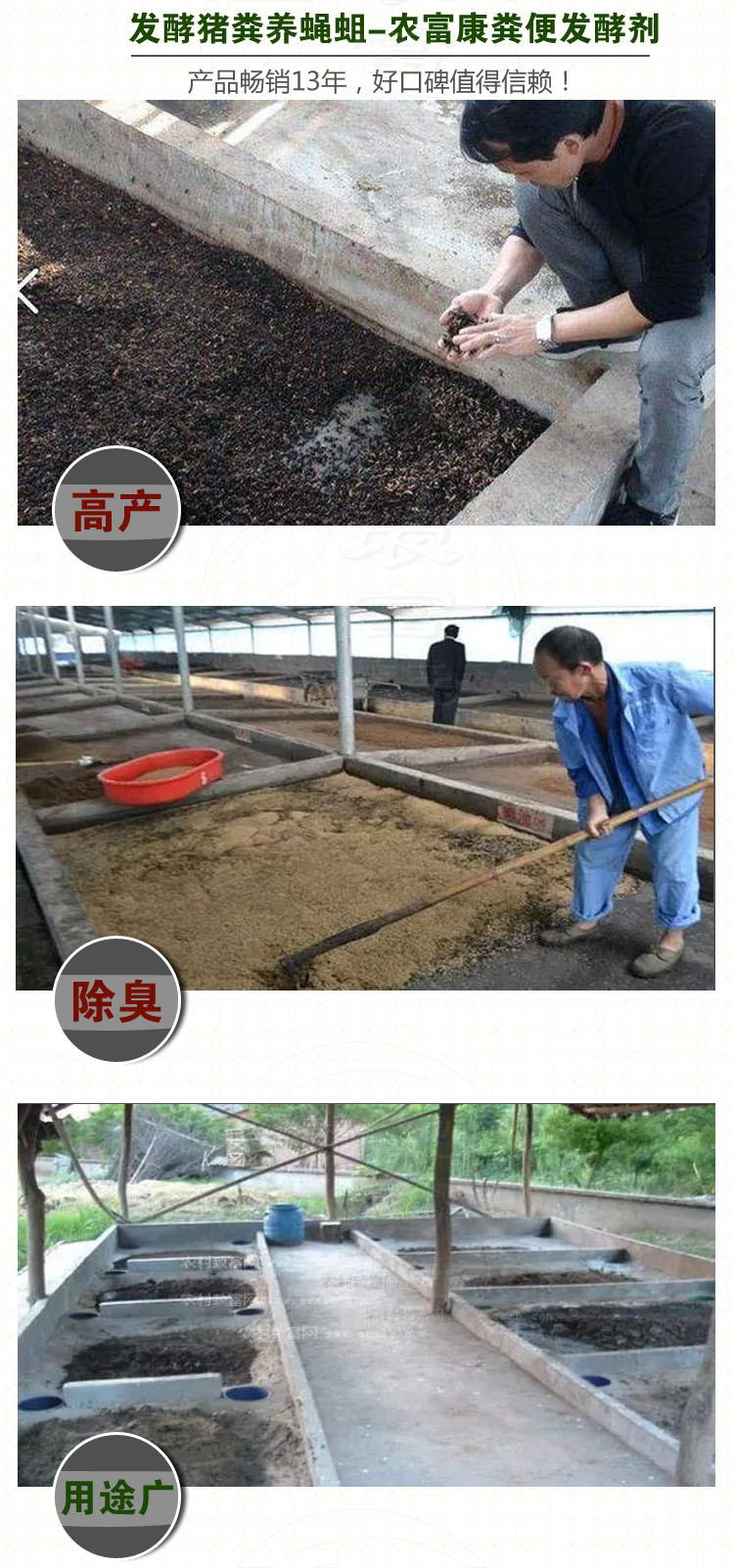 现阶段,蝇蛆作为富含优质蛋白质的营养资源,深受广大养殖户欢迎,养殖效益极高。并且蝇蛆养殖条件低,繁殖速度快,不仅可以用麦麸、米糠、酒糟、豆渣等农副产品下脚料养蝇蛆,而且可以用动物粪便饲养蝇蛆,变害为利,化废为宝。下面我们就来详细介绍下用农富康粪便发酵剂发酵猪粪养蝇蛆的方法:订购咨询来电:15039067749