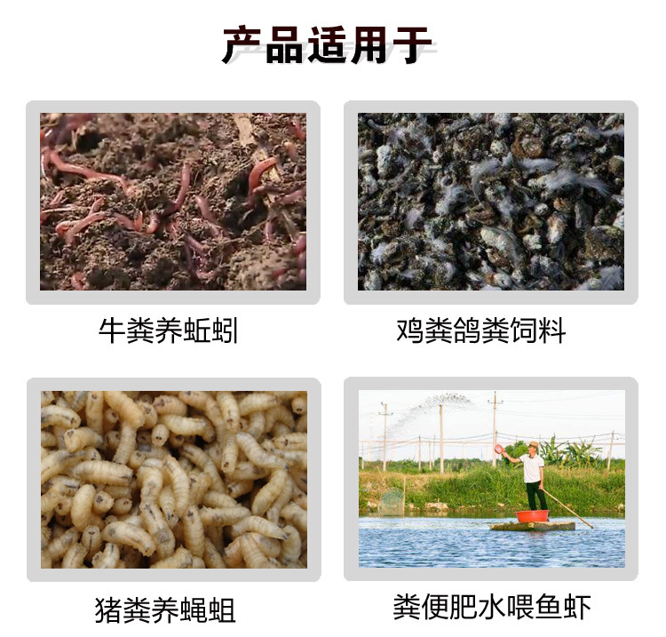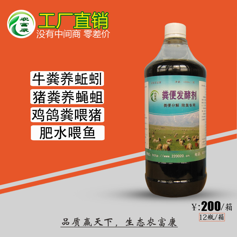 农富康粪便发酵剂,由放线菌、乳酸菌、芽孢杆菌、光合细菌、酵母菌等多种单一菌种经特殊工艺研制而成的高效复合微生物菌液。每毫升含有益生菌≥500亿CFU,专门用于发酵粪便养殖蝇蛆,杀灭粪便里面的寄生虫卵和有害病菌,营造益生菌群环境。