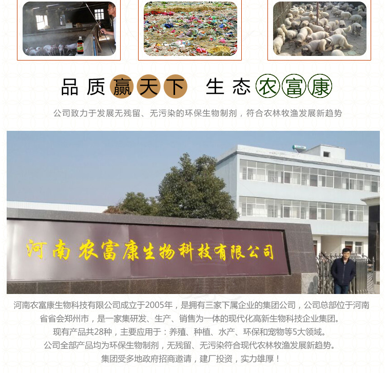 近几年来随着河南农富康公司的老客户越来越多,其除臭消毒液也被广泛应用,并和多地畜牧局合作用于家禽家畜养殖场、屠宰场除臭消毒,还用到了垃圾场除臭味消毒杀菌上。