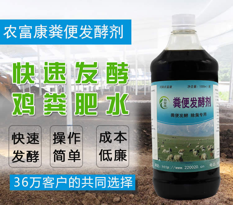 用量:1瓶农富康粪便发酵剂可发酵1立方鸡粪水,整箱可发酵12-15立方鸡粪水。