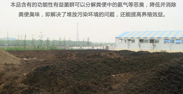 功效:因为专用的粪便发酵剂中的高活菌含量可使粪肥快速升温,高温可杀鸡粪中的病菌、虫/卵等;同时可分解氨氮、硫-氢等有害物质,避免虾群损伤;经发酵的粪肥臭味小,甚至没有臭味,撒入虾塘不会污染水质,也不会污染环境,而且肥水快,肥效持续时间久,可长效肥水。