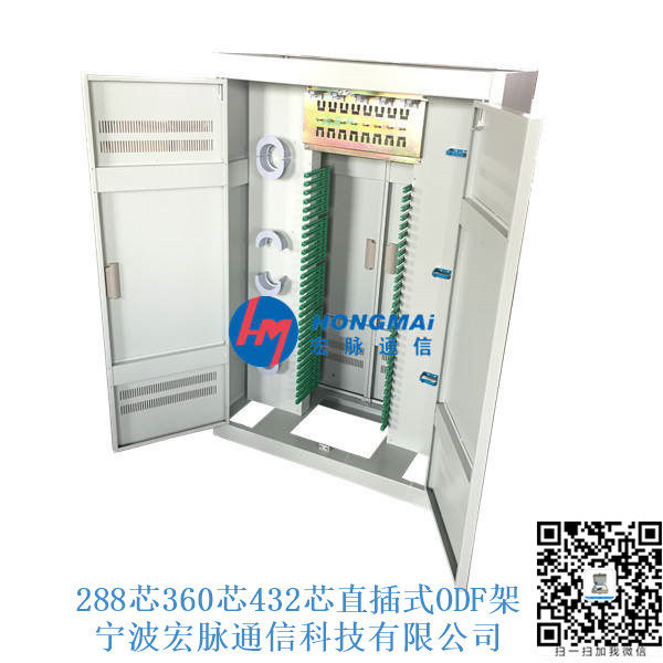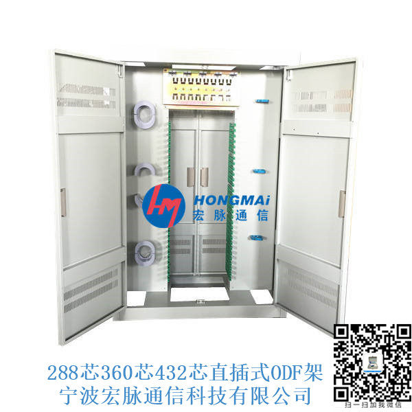 OMDF光纤总配线架厂家、OMDF配线架 OMDF总配线架 宏脉OMDF光纤总配线架 FTTH接入层光纤分配架 光纤跳线架规格(288芯、576芯、648芯、720芯、864芯、960芯、1152芯、1440芯光纤总配线架) (Fiber Optic Distribution frame),又称光纤配线柜,是用于光纤通信网络中对光缆、光纤进行终接、保护、连接及管理的配线设备。在本设备上可以实现对光缆的固定、开剥、接地保护,以及各种光纤的熔接、跳转、冗纤盘绕、合理布放、配线调度等功能,是传输媒体与传输设备之间的配套设备