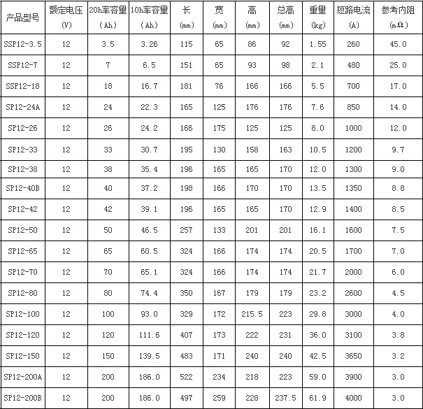 圣阳蓄电池详细参数: