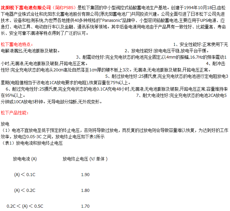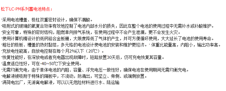 | 品牌 | 松下蓄电池 | |