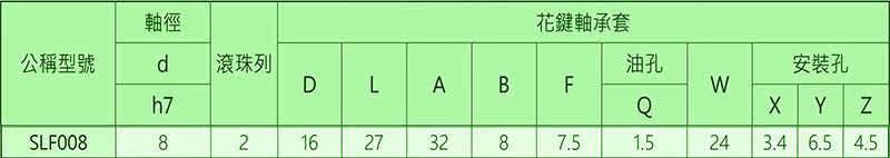 台湾TBI滚珠花键,SLF008T2法兰型花键,利用法蘭通過螺栓將外筒固定在支撐座上,因裝配簡單,最適合用在支撐座上。使用在加工鍵槽有變形的危險或是支撐座的寬度比較狹小的場合,能完全地防止配合部份產生的旋轉方向間隙。