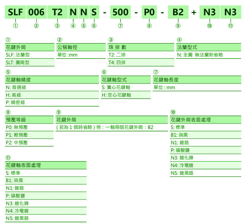 TBI-SLF系列滚珠花键型号释义
