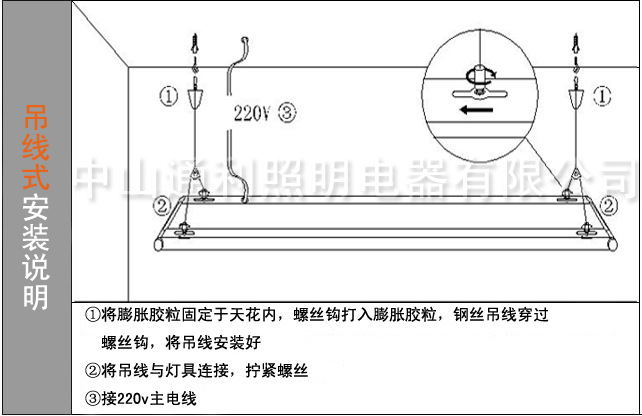 原厂标准配置1米吊线,如需加长请与厂方联系!