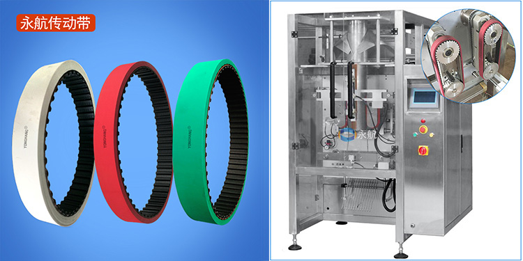随着人们生活水平不断提高,对各种方便食品的需求也随之大增,这近一步拉动了我国食品包装业的快速发展,立式包装机就是其中的包装机械之一~从液体到固体,从粉末到颗粒,从农产品到易腐产品,立式包装机在食品包装应用中发挥着重要作用,可以保持物品新鲜以供使用和消费~而用于这类机械上的立式包装机拉膜同步带在食品包装成型过程中也起着至关重要的作用!永航传动带公司集研发、生产、定制于一体,拥有10年的行业生产经验,主要负责在这些同步带表面加胶加厚,有助于在包装中垂直下拉薄膜来制成袋子;此外永航还可提供皮带的冲孔和磨齿等加工!