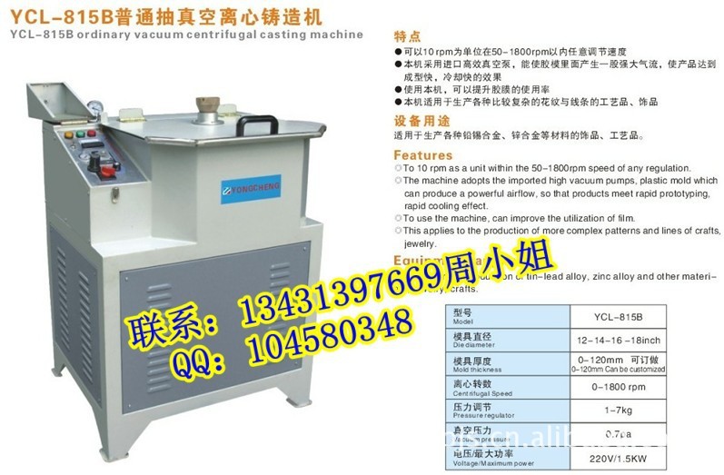 一.工艺品首饰机械:离心铸造系列:(全自动三模头离心机、半自动三模头离心机、普通离心铸造机,全自动压模机等 普通压模机) 熔炉:(智能数控电熔炉、台湾版电熔炉、普能电熔炉等) 烘干设备:(烤箱、自动恒温运风局炉、离心式热风烘干机、隧道式自动恒温局炉等 ) 喷涂设备:(喷油柜、水濂式喷油柜、混合式喷油柜等) 模具冷却系统:超速冷风槽(加快模具的冷却来延长模具的使用寿命)全套自动生产流水线:整个生产过程集中在不超过14㎡的区域里
