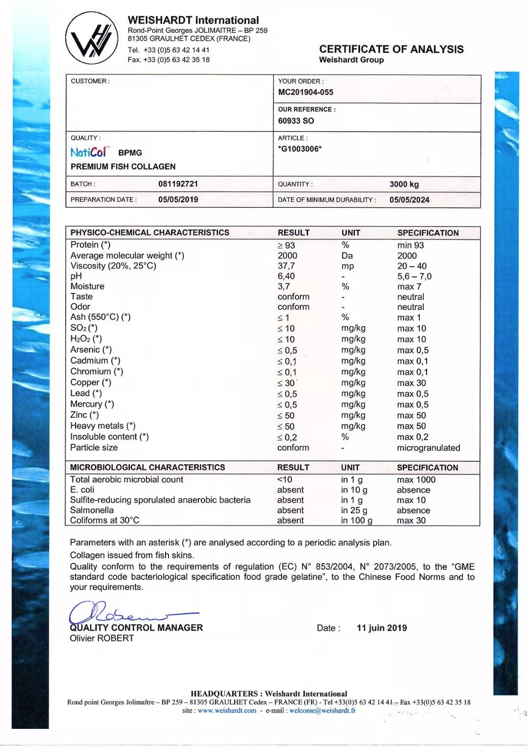 批次出厂检验报告(COA):批次仅供参考: