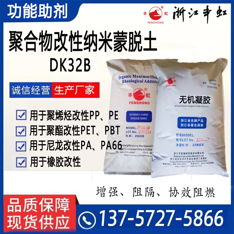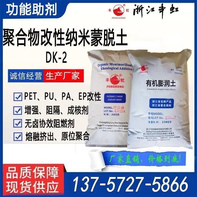 DK2纳米有机粘土是一种含羟基有机改性的高纯度有机蒙脱土,主要用于PET(PBT)、PU、PA、EP等聚合物改性。由于蒙脱石大的面/厚比和聚合物链与蒙脱石层片的相互作用因而能提高聚合物的力学性能、热变形温度、尺寸稳定性、气体和紫外线阻隔性能,产品的应用性能类似Nanomer 1.34TCN、Cloisite 30B。