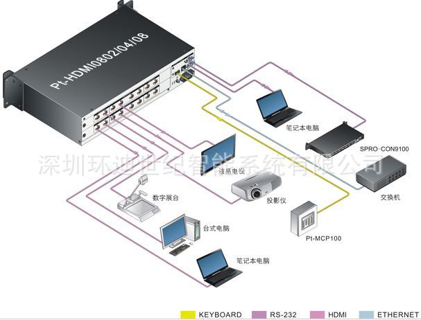 - 支持8路HDMI视频输入,2/4/8路HDMI输出与及嵌入式多通道数字音频信号的交叉切换。