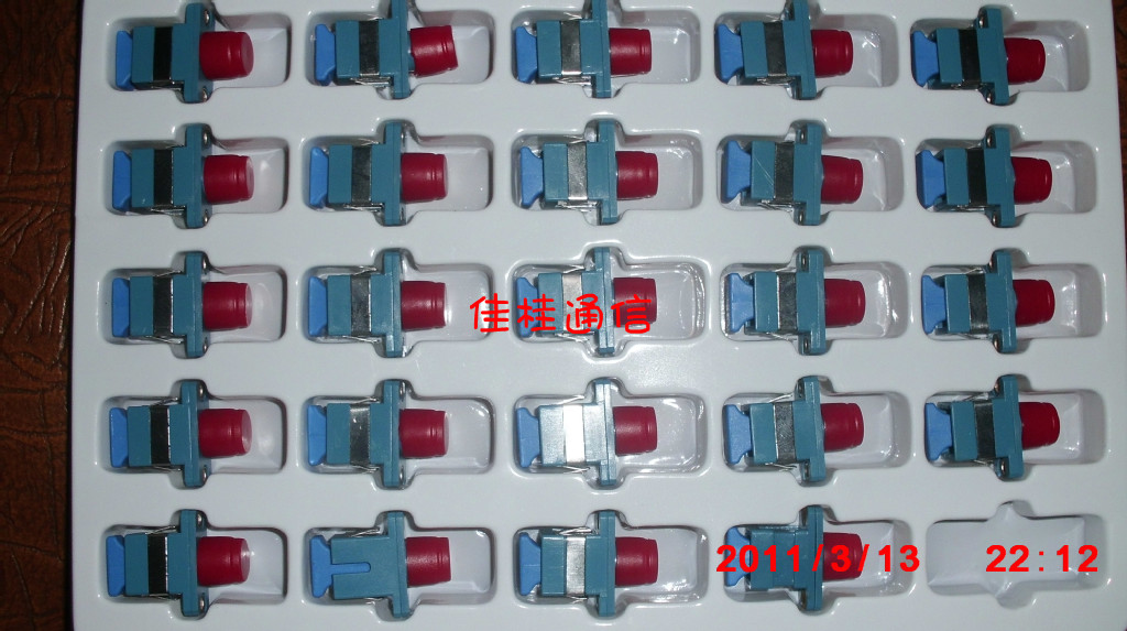 标准型光纤适配器(又称法兰盘)是用于光纤连接器插头之间的一种无源器件,在光纤通信系统起到至关重要的作用。我公司生产的光纤适配器采用无角度磨光高保持的磷青铜和耐高温、耐酸、碱的超高硬度(高密度)的氧化锆套筒,具有很好的光学性能和较高的机械稳定性,有FC、FC-D、ST、E2000、MU、LC/PCLC/APC、SC/PC、SC/APC等各种型号可选。