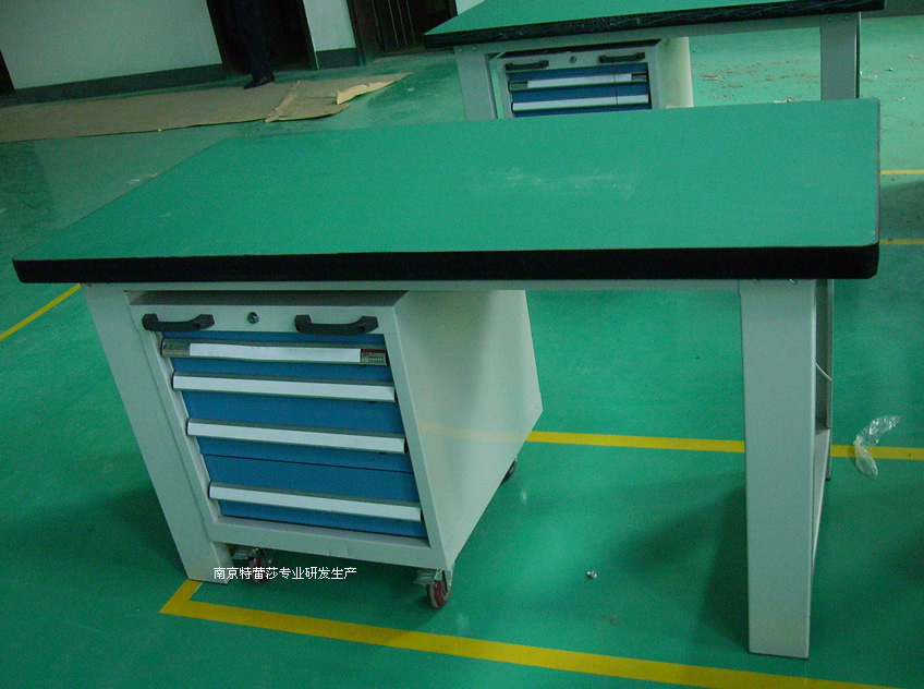 工作台 工作台采用优质冷扎板精工制作而成,坚固的工作桌框架,牢固平稳,可使工作桌承重1000kg;多种工作桌面选择,可配合不工使用的要求;工具吊柜(箱),侧柜(箱),外形美观;层板,抽屉质量上乘,承重大,抽屉内可根据需要任意分隔;节约空间,适用性强。