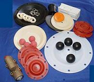 橡胶隔膜以天然橡胶模压而成,橡胶内加入人造添加剂以提高隔膜的抗化学性和弯曲性能。在压模橡胶隔膜时,橡胶内安置了一种尼龙编织网以分散应力从而强化隔膜。