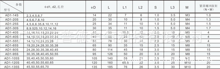 阿普德AD1-S梅花顶丝型联轴器系列