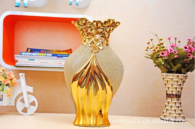 【产品名称】:惊艳!奢华宫廷系 高温电镀磨沙陶瓷工艺花瓶 高档家饰艺术花瓶