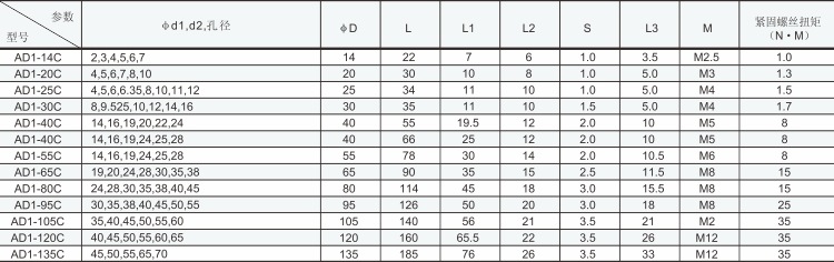 1、 以上描述为外径为20mm的广州阿普德梅花式联轴器(螺栓直接固定型),广州阿普德电气科技有限公司还有外径为16mm、25mm、32mm、42mm、48mm等的梅花型联轴器(螺栓直接固定型),若以上没有您所需的型号,请与我们联系,特殊孔径可按需求加工,敬请咨询。
