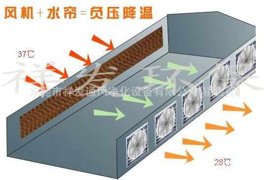 祥发负压通风循环水帘降温原理: